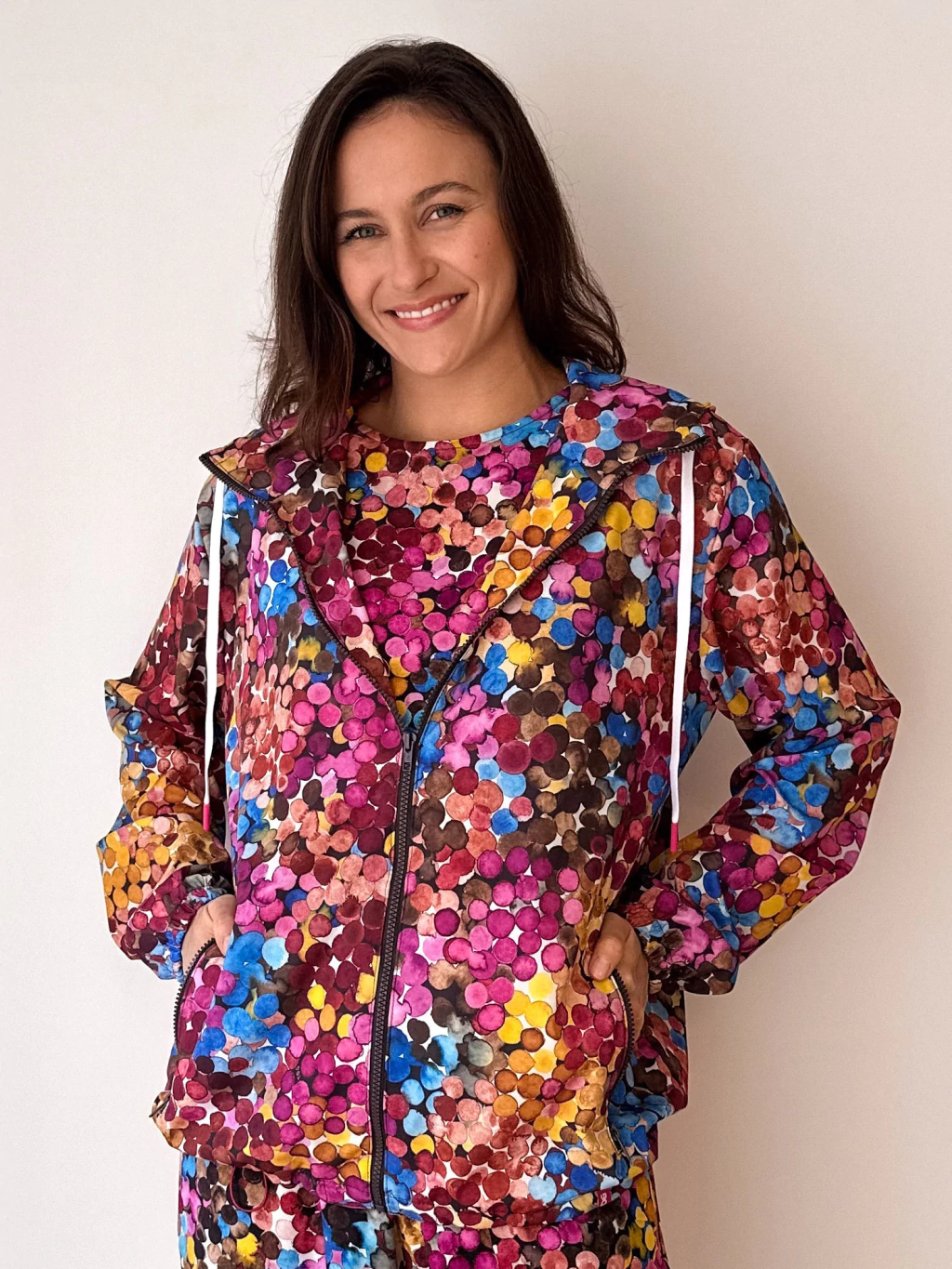 Jaqueta corta vento, feita em poliéster com elastano, leve e macia, com um excelente caimento. A modelagem é ampla e garante mobilidade, especialmente nos braços, sem restringir os movimentos. Com comprimento médio, na altura do quadril, possui um elástico roliço embutido com regulador ajustável na parte interna para ajuste da circunferência. Bolsos funcionais com fechamento em zíper, asseguram que nada caia. A abertura frontal tem zíper tratorado e os punhos com elástico embutido, de circunferência confortável. O capuz protege a cabeça e possui ajuste com cadarço; quando aberto, o capuz se transforma em uma elegante gola. A Jaqueta Alamanda é uma peça essencial e versátil, ideal para todas as ocasiões. Seja para passeios ao ar livre, atividades físicas ou compondo um look casual, ela será sua companheira indispensável.